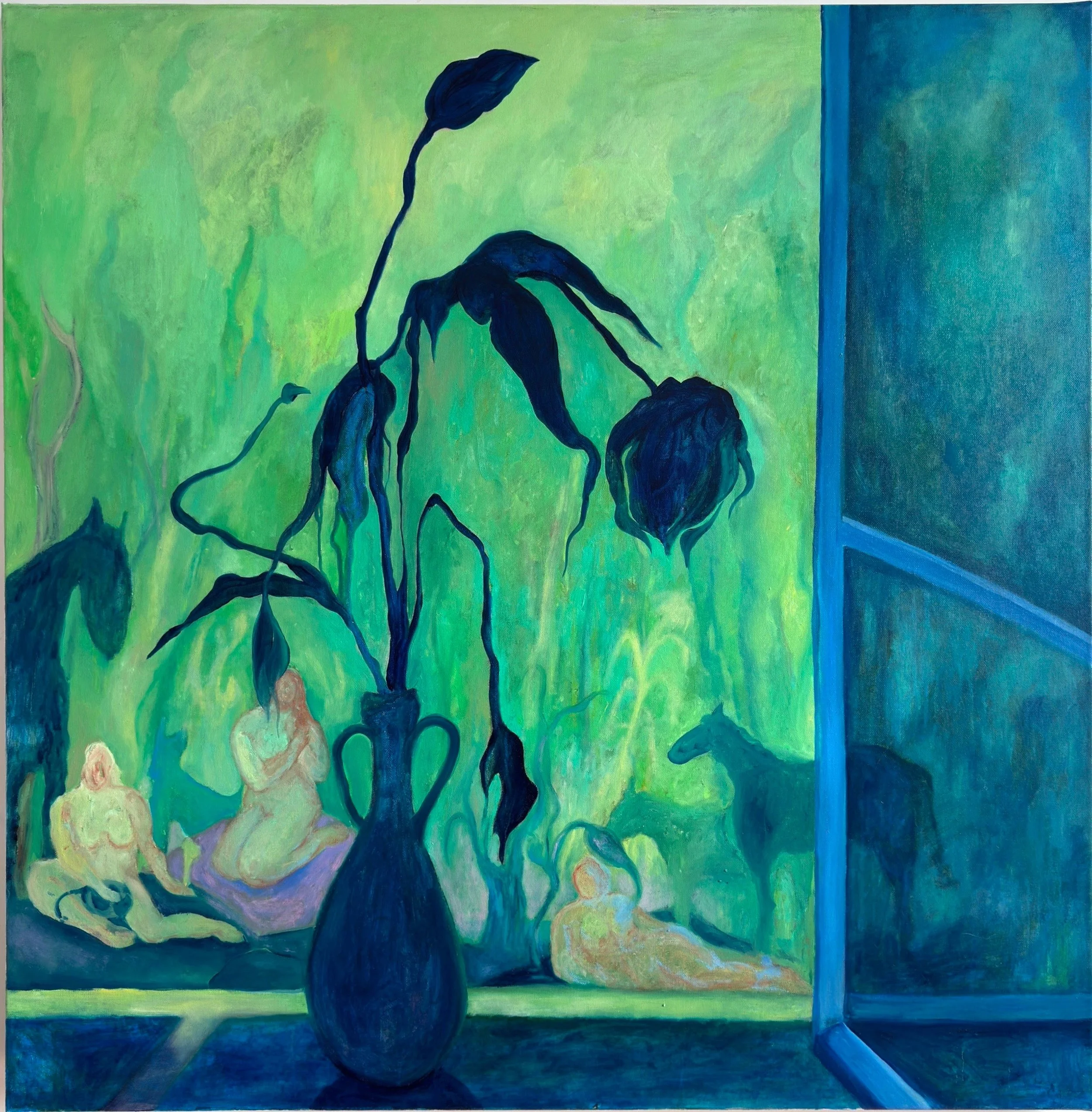 Sai: This is a fresh and intriguing perspective! I paint from memory, not references. When depicting a horse or tree, I reconstruct them mentally rather than using sketches or photos. This creates distortions that feel both familiar and alien—images that exist plausibly within the painting’s world but dissolve when scrutinised in reality.