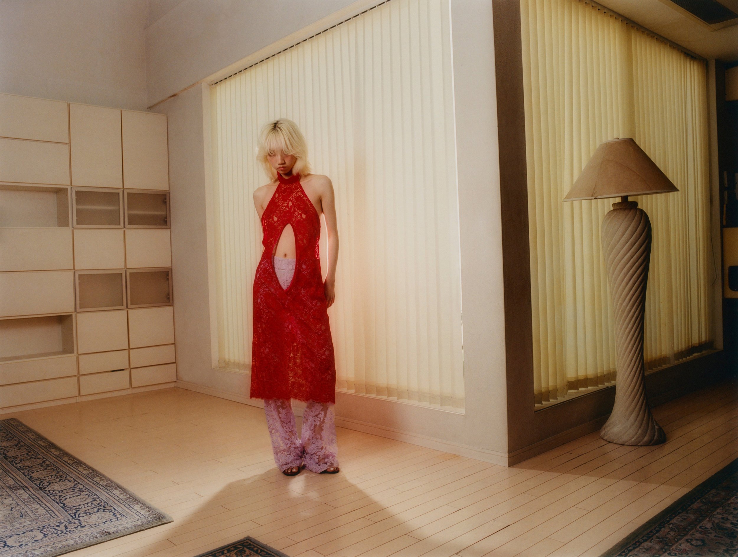 Her first collection for Spring/Summer 2026, titled 201, takes its name from the designer’s own room number, treating her living space as an intimate metaphor for personality itself. In an era obsessed with categorisation and externally defined individuality, the collection turns inward, locating identity in an accumulation of everyday choices: what is kept, discarded, loved, or even left behind. Drawing exclusively from her own private space, wardrobe, and memories, while deliberately avoiding external references, Sato translates unconscious preferences and private sensibilities into garments that feel deeply personal.
